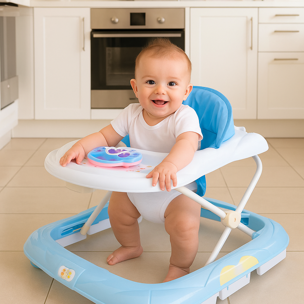 O Andador Pianinho Azul auxilia o bebê nos primeiros passos com conforto, segurança e diversão. Possui estrutura resistente, assento acolchoado e ajustável em altura para acompanhar o crescimento. A bandeja interativa conta com teclas de pianinho e brinquedos coloridos, que estimulam a coordenação motora, a percepção sonora e visual.