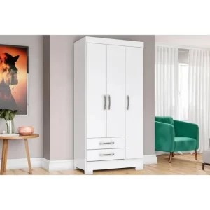 Roupeiro 3 Portas 2 Gavetas com Pés Branco – BE16-66