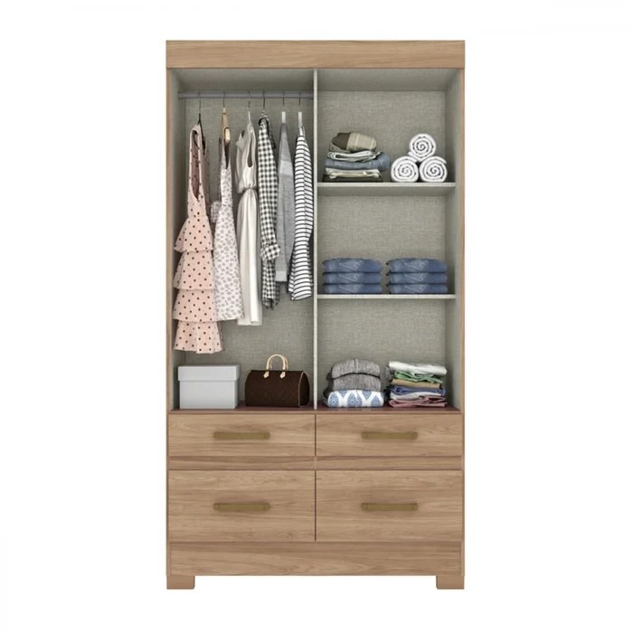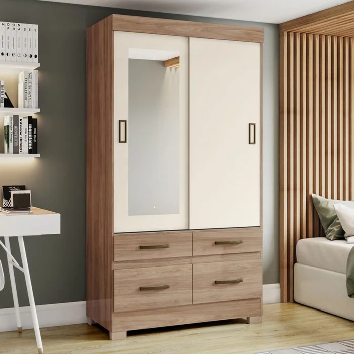 Roupeiro BE25-201 2 Portas Deslizantes 4 Gavetas – Jequitibá/Off White