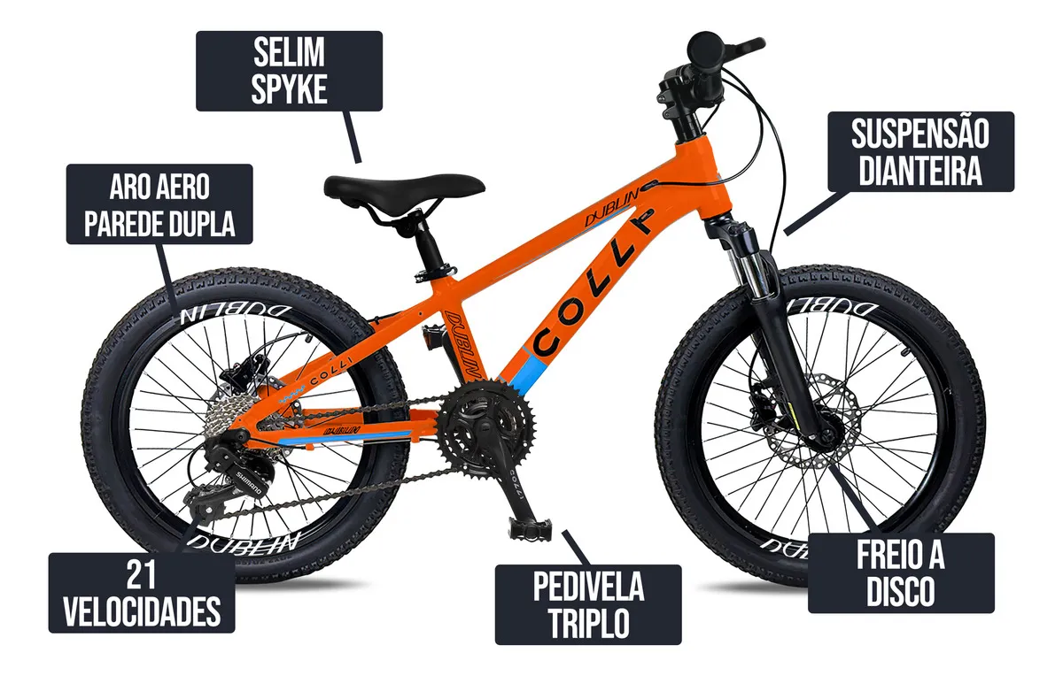 A Colli Dublin Aro 20 é uma bicicleta em alumínio, leve e resistente, equipada com <strong data-start="222" data-end="240" data-is-