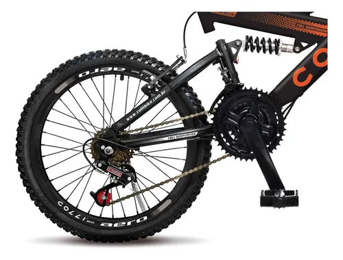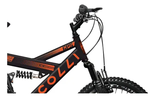Bicicleta Colli GPS Full – Aro 20 – 21 Velocidades – Dupla Suspensão – Preto Fosco/Laranja Neon
