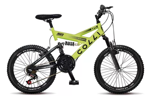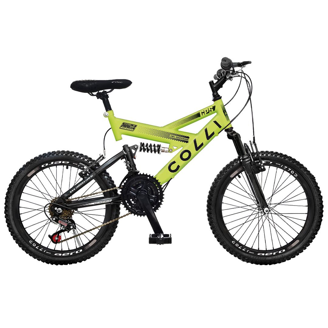 Bicicleta Colli GPS Full – Aro 20 – 21 Marchas – Dupla Suspensão – Amarelo Neon