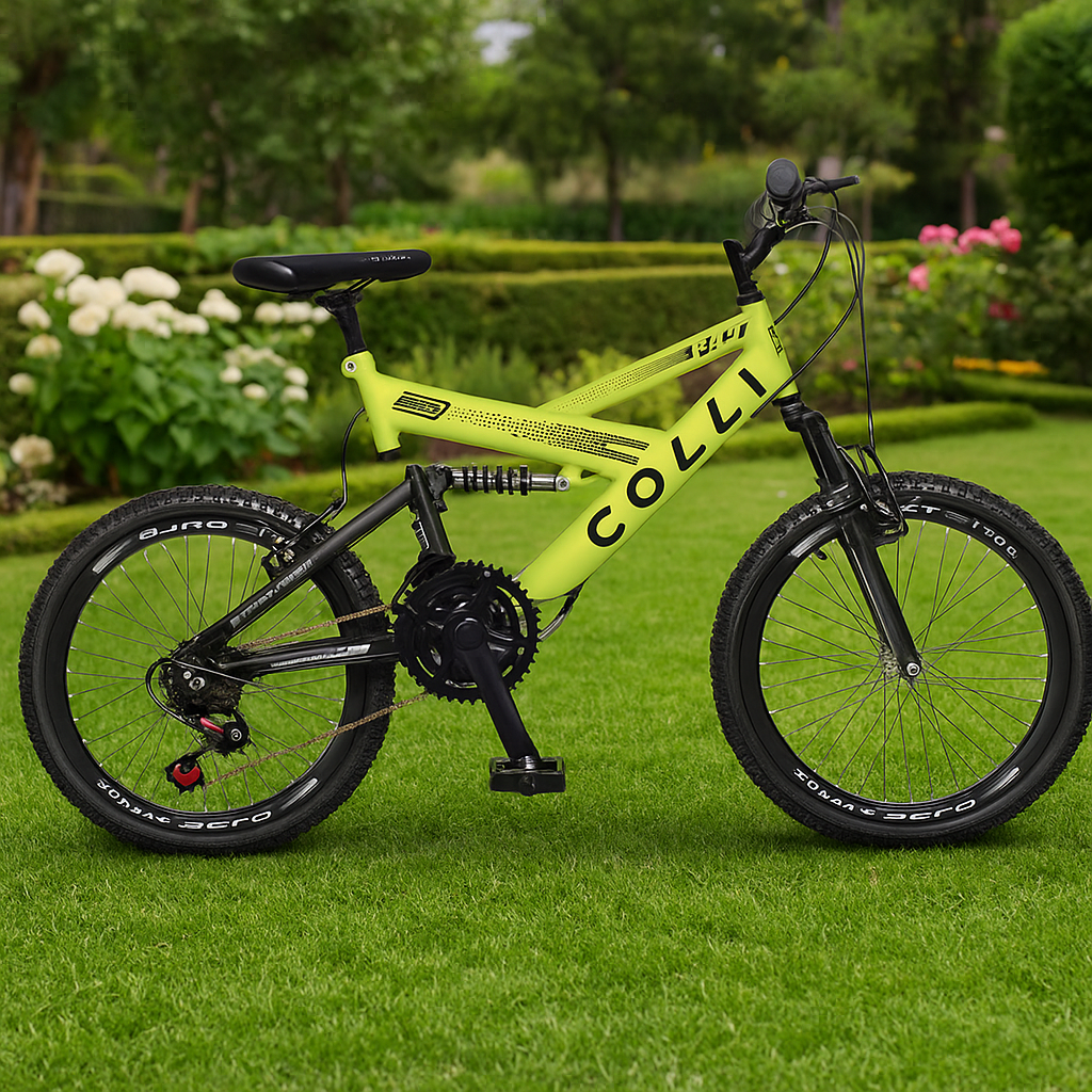 A Colli GPS Full Aro 20 foi projetada para jovens que buscam estilo, conforto e desempenho. Com dupla suspensão, 21 velocidades e um visual arrojado em amarelo neon, ela garante uma experiência de pedalada segura e divertida, seja para lazer, deslocamentos urbanos ou pequenas trilhas.