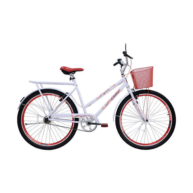 Bicicleta Aro 26 Gênova Per c/ Cesta V.B – Branco/Vermelho