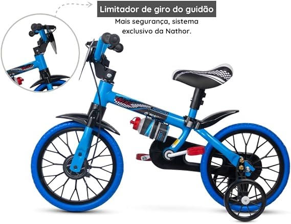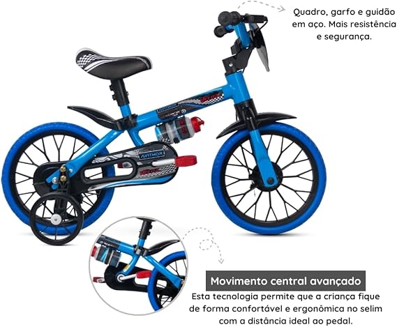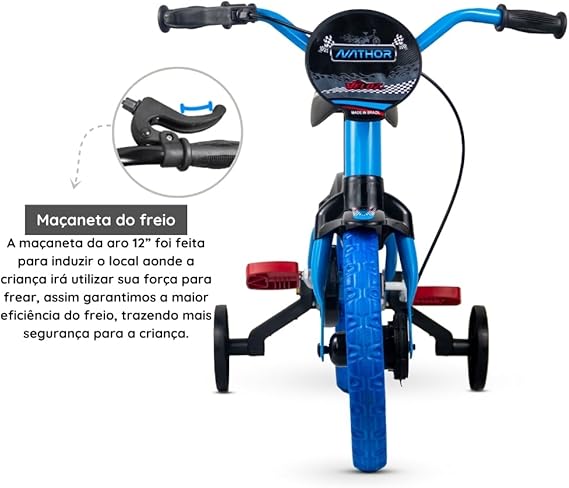 A Bicicleta Veloz 12″ é ideal para crianças que estão começando a pedalar, oferecendo segurança, conforto e estilo. Com cores vibrantes azul e selim em PU, proporciona passeios mais agradáveis e divertidos.