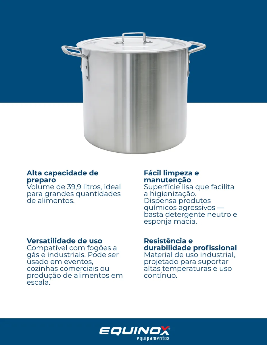 O Caldeirão Ramos Hotel Nº40 Lixado oferece excelente capacidade, resistência e desempenho térmico, sendo ideal para cozinhas profissionais, restaurantes, hotéis e eventos. Fabricado em alumínio reforçado, garante durabilidade e praticidade no preparo de grandes quantidades de alimentos.