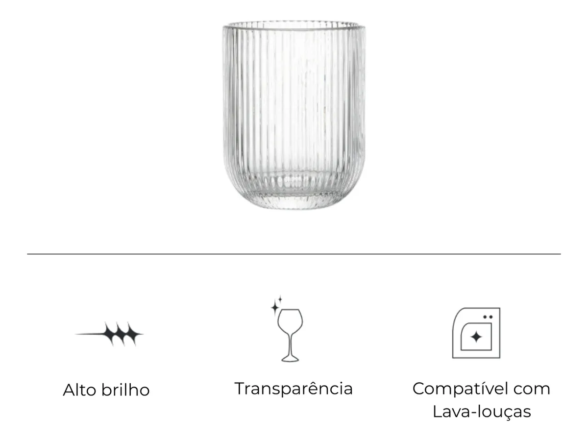 O Conjunto de Copos Reluz é ideal para o uso diário, unindo praticidade, resistência e design moderno. Com capacidade generosa de 430 ml, é perfeito para servir água, sucos, refrigerantes e outras bebidas com conforto e elegância.