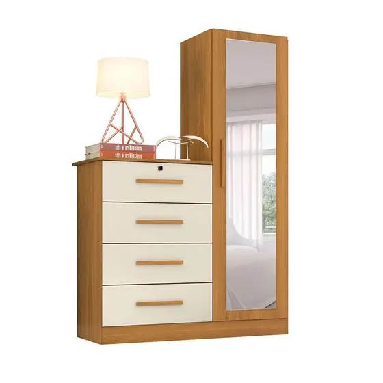 Produzido em MDP 15 mm com acabamento pintura UV garantindo maior Resistência e Durabilidade. Além disso, possui puxadores em MDF fresado, 04 gavetas de corrediças telescópicas, sendo um gaveta com chave, 01 porta com espelho para deixar seu quarto mais elegante e prateleiras internas com amplo espaço. Perfeito para organização do seu quarto com muita mais praticidade.