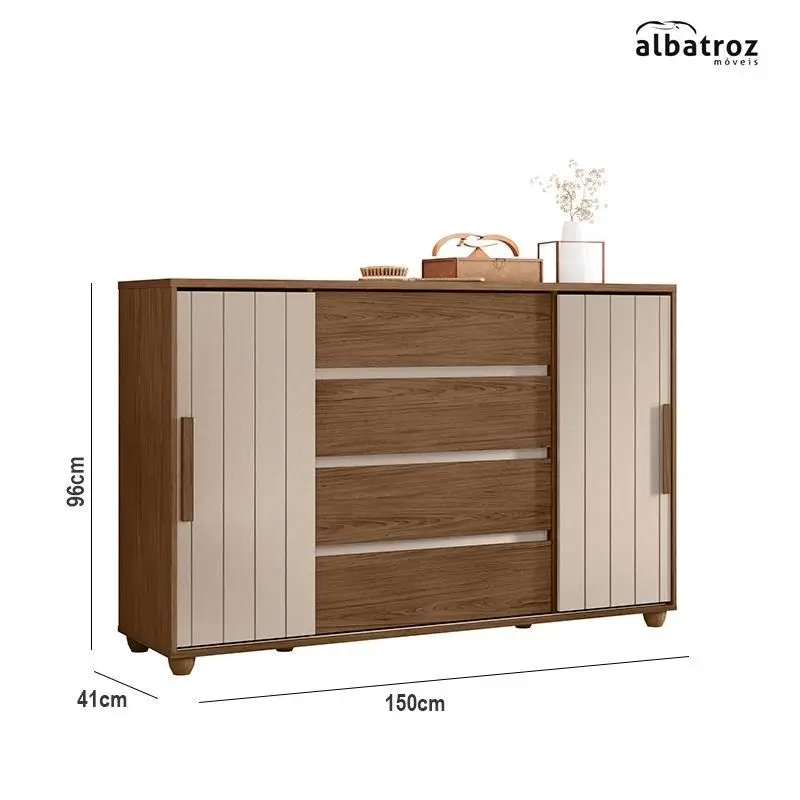 Cômoda Evidenza – Avelã/Fendi Metálico (Flex)