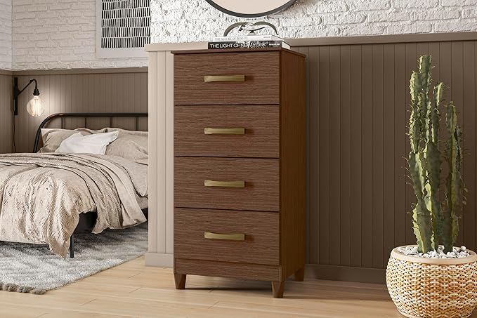 A Cômoda Mobi combina estilo e funcionalidade, sendo ideal para organizar roupas, acessórios e objetos pessoais. Produzida em MDP de alta qualidade, apresenta acabamento externo Cacau com interior Branco, garantindo um visual moderno e clean que se adapta facilmente a qualquer decoração.