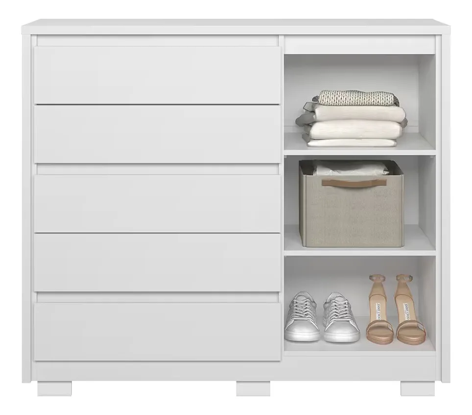 A Cômoda Sapateira Duetto é ideal para quem busca organização, praticidade e visual clean. Com acabamento em branco fosco liso, ela se adapta facilmente a diferentes estilos de quarto ou closet, oferecendo espaço funcional para guardar calçados, roupas e acessórios de forma organizada.