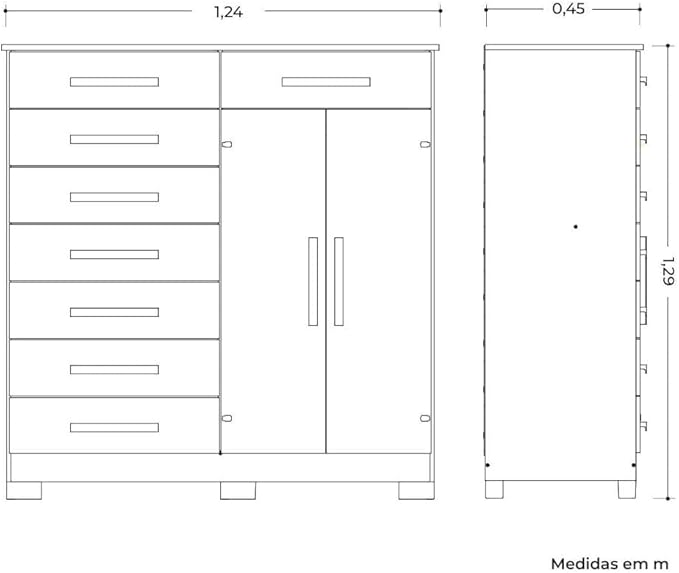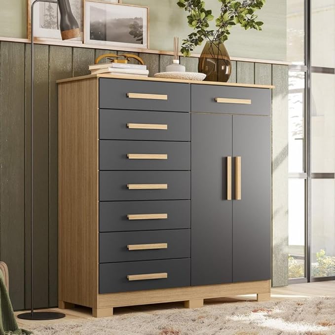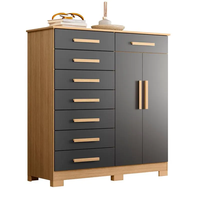 A Cômoda Verona é ideal para quem busca organização e estilo no quarto. Produzida em MDP de alta qualidade, combina o acabamento Nature com detalhes Titanium, oferecendo um visual moderno e elegante. Perfeita para armazenar roupas, acessórios e objetos pessoais, mantendo o ambiente sempre organizado.