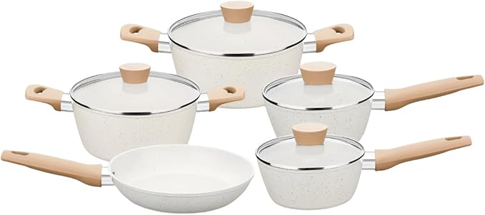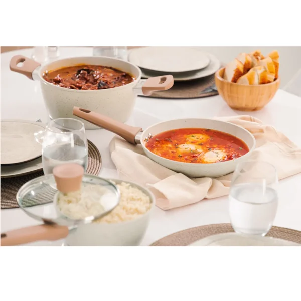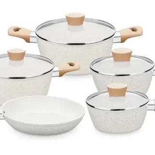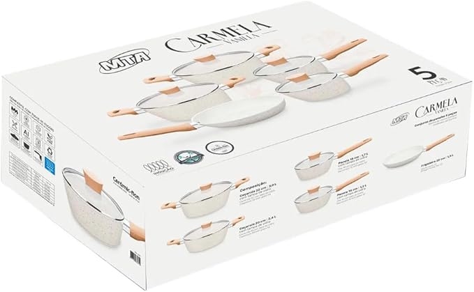 O Conjunto de Panelas Carmela – 5 Peças é produzido em alumínio de alta qualidade, oferecendo durabilidade, resistência e excelente distribuição de calor para um cozimento rápido e uniforme.