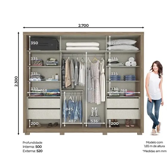 Com 2 portas deslizantes, otimiza o espaço e permite fácil acesso ao interior. Internamente, conta com prateleiras, cabideiros e gavetas, oferecendo organização completa para roupas, calçados e acessórios. Sua estrutura robusta garante durabilidade e resistência, tornando-o perfeito para uso diário.