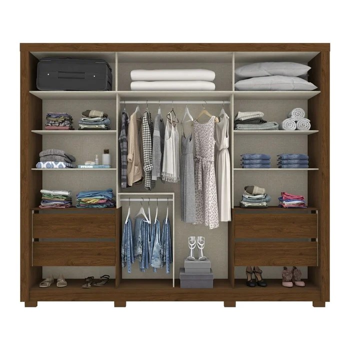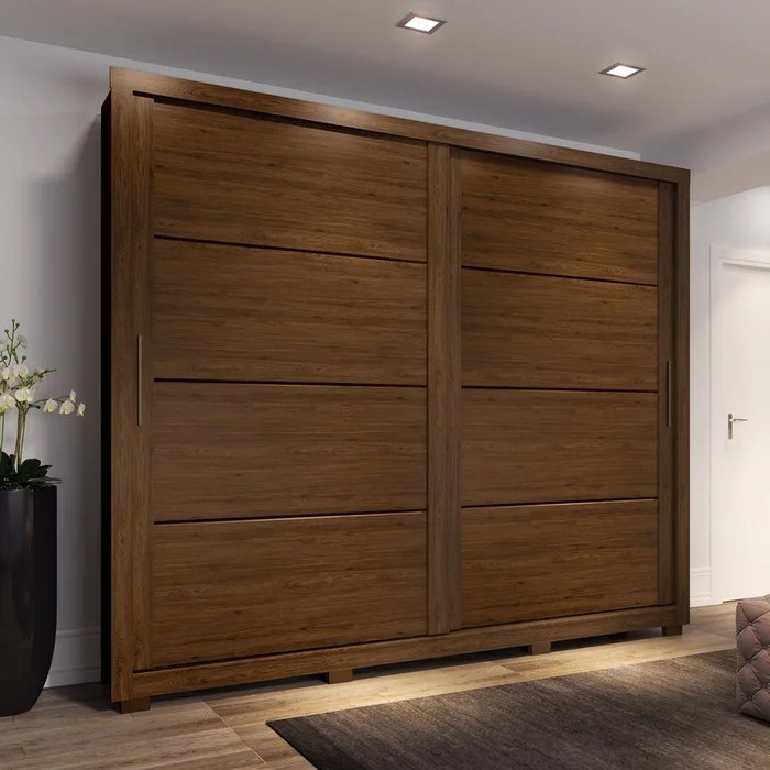 Com 2 portas deslizantes, o móvel garante praticidade no dia a dia, otimizando o espaço do quarto e proporcionando acesso facilitado ao seu interior. O espaço interno é amplo, com divisões bem planejadas, cabideiros resistentes, prateleiras funcionais e gavetas espaçosas, ideais para manter roupas, calçados e acessórios bem organizados.
