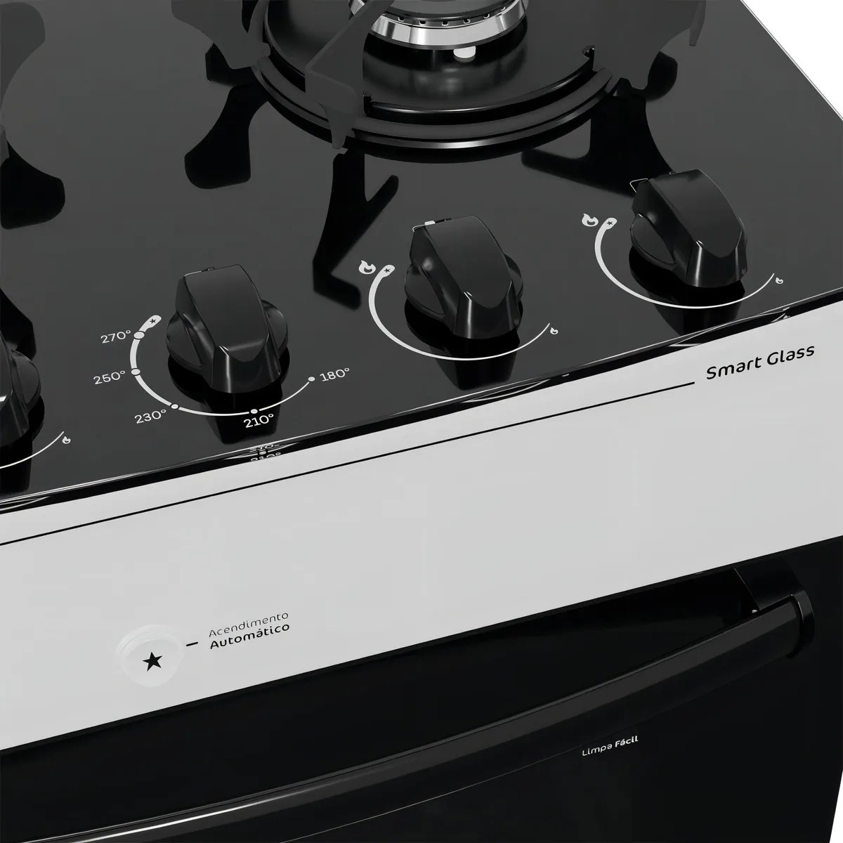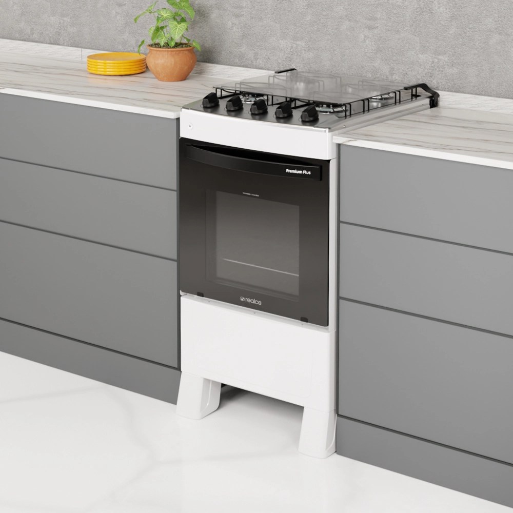 O Fogão Realce Premium Glass 4Q combina elegância e praticidade para sua cozinha. Com design moderno e mesa de vidro temperado, oferece resistência e facilidade na limpeza. Possui 4 queimadores de alto desempenho, acendimento automático e trempes individuais, garantindo maior estabilidade para as panelas. Seu forno espaçoso conta com porta de vidro panorâmica, permitindo melhor visualização dos alimentos durante o preparo.