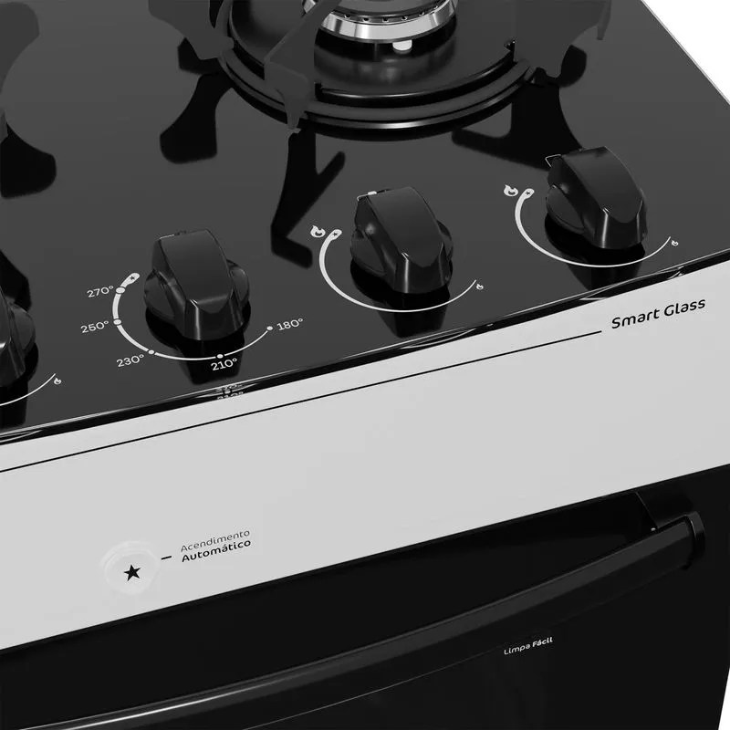 Com 4 queimadores potentes, permite preparar várias receitas simultaneamente, otimizando o tempo. O forno espaçoso e eficiente garante assados uniformes, enquanto os botões anatômicos e acendimento automático proporcionam conforto e praticidade no uso diário.