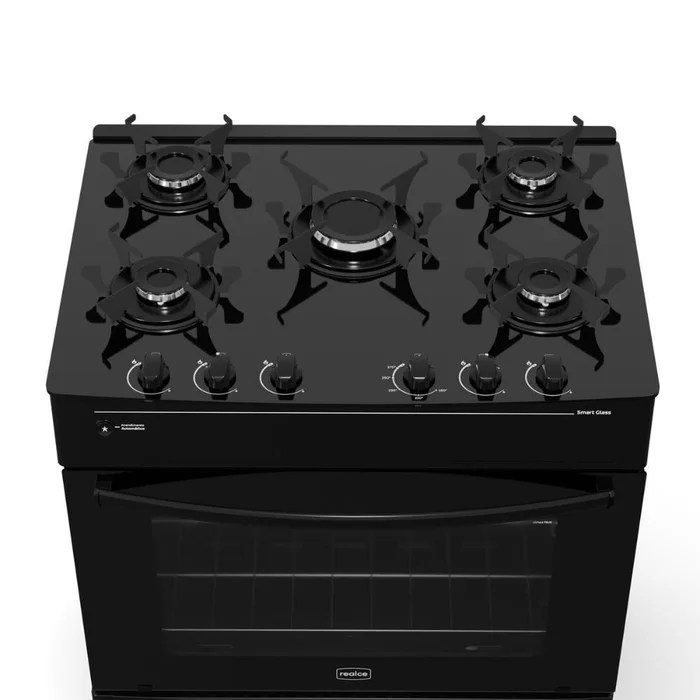 FOGAO A GAS REALCE SMART GLASS 5Q PRETO