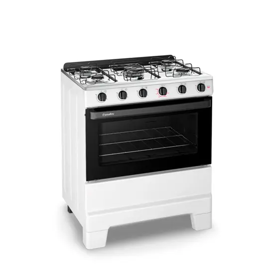 Equipado com 5 queimadores bem distribuídos, permite preparar várias receitas ao mesmo tempo, otimizando o tempo e trazendo mais praticidade. Conta com mesa em aço esmaltado, botões anatômicos e acendimento automático, garantindo maior conforto e agilidade no uso. O forno amplo possibilita assar diferentes pratos com rapidez e eficiência.
