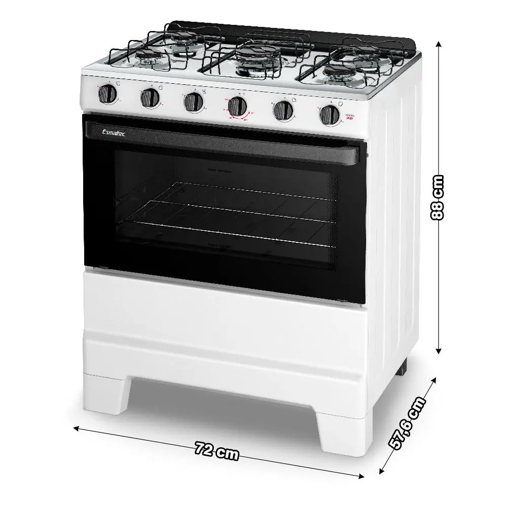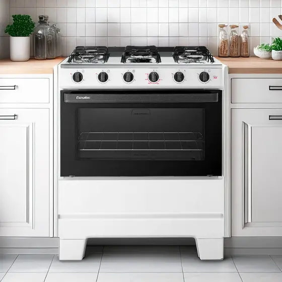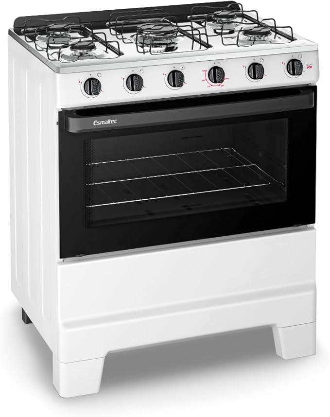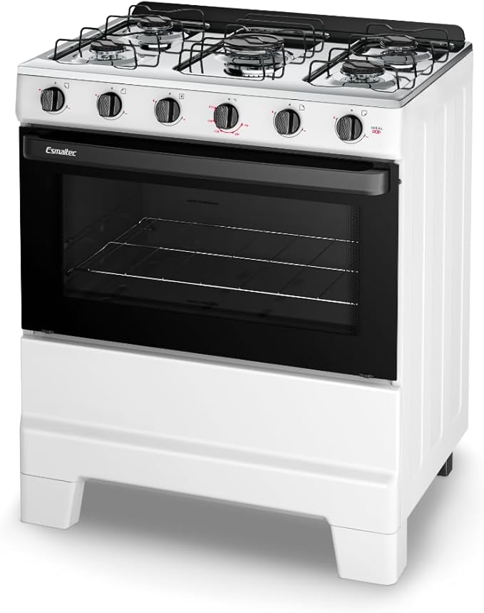 O Fogão Esmaltec Ideal Pop 5 Bocas combina design moderno, praticidade e eficiência para o dia a dia. Com acabamento na cor branca, traz leveza e elegância à cozinha, além de ser fácil de harmonizar com outros eletrodomésticos.