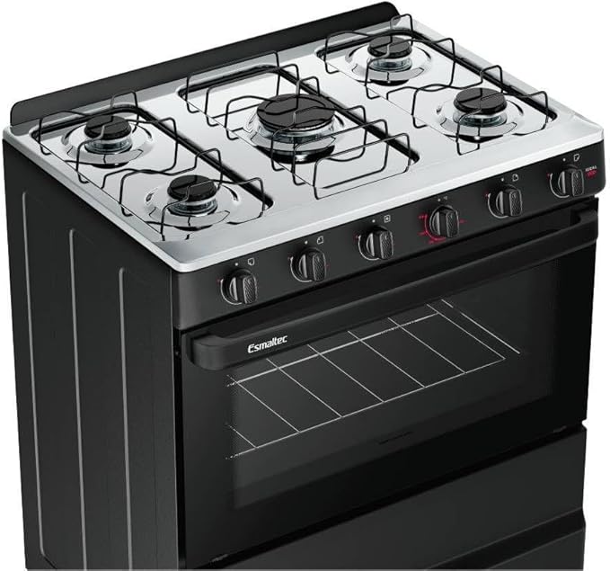 O Fogão Esmaltec Ideal Pop 5 Bocas é perfeito para quem busca praticidade, segurança e eficiência na cozinha. Com design moderno na cor preta, ele alia robustez e estilo, trazendo elegância ao ambiente.