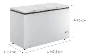 ? Amplo espaço e eficiência para conservar alimentos por mais tempo.Freezer Horizontal 2 Portas – 534 Litros – 127V – Branco – Classe A