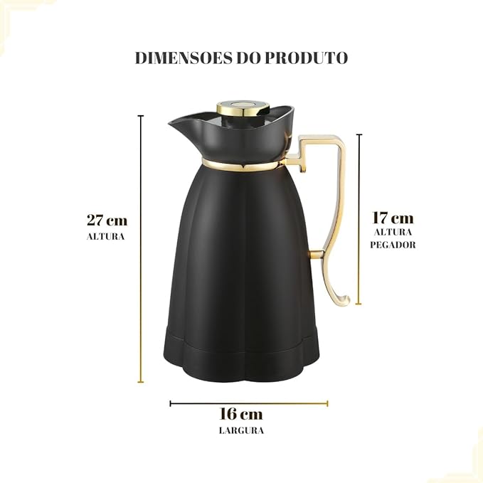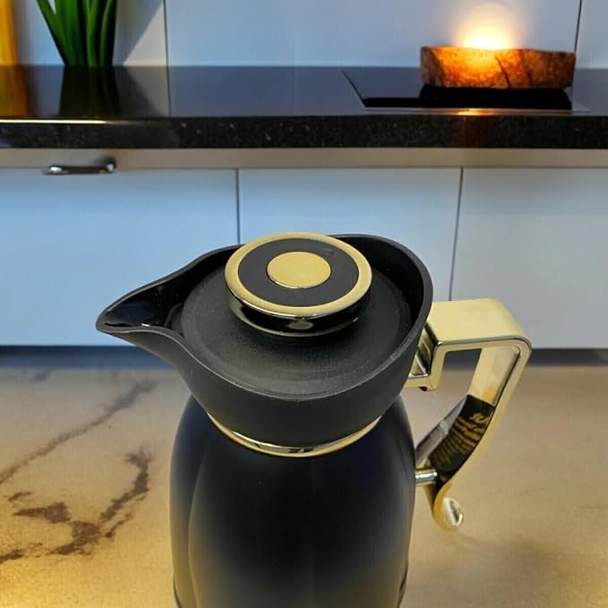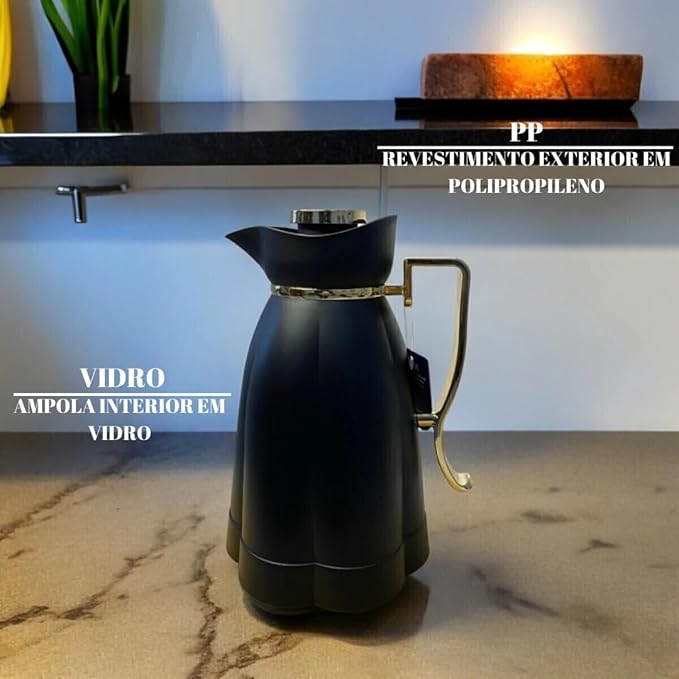 A Garrafa Térmica Khadija 1 Litro da Tuut é ideal para conservar a temperatura de bebidas quentes ou frias por mais tempo. Possui design moderno e elegante na cor preta, combinando praticidade e estilo em qualquer ambiente — seja em casa, no escritório ou em eventos.