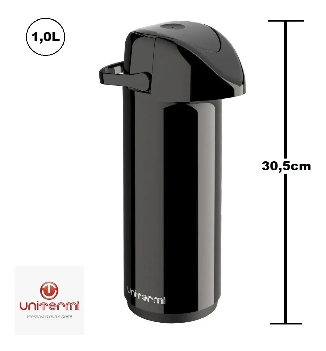 A Garrafa Térmica Verona 1 Litro Preta é perfeita para manter suas bebidas quentes ou frias por muito mais tempo, unindo praticidade, elegância e eficiência no dia a dia.
