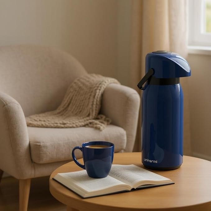 A Garrafa Térmica Viena 1 Litro Azul combina design moderno, praticidade e excelente conservação térmica, ideal para o seu café, chá ou suco estar sempre na temperatura certa.