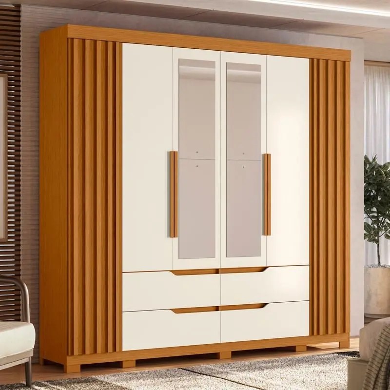 Guarda-Roupa Doble Casal com Espelho – Cinamomo/Off White