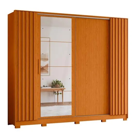 GUARDA ROUPA JACARANDA 4 C ESPELHO CINAMOMO/OFF WHITE (FLEX)
