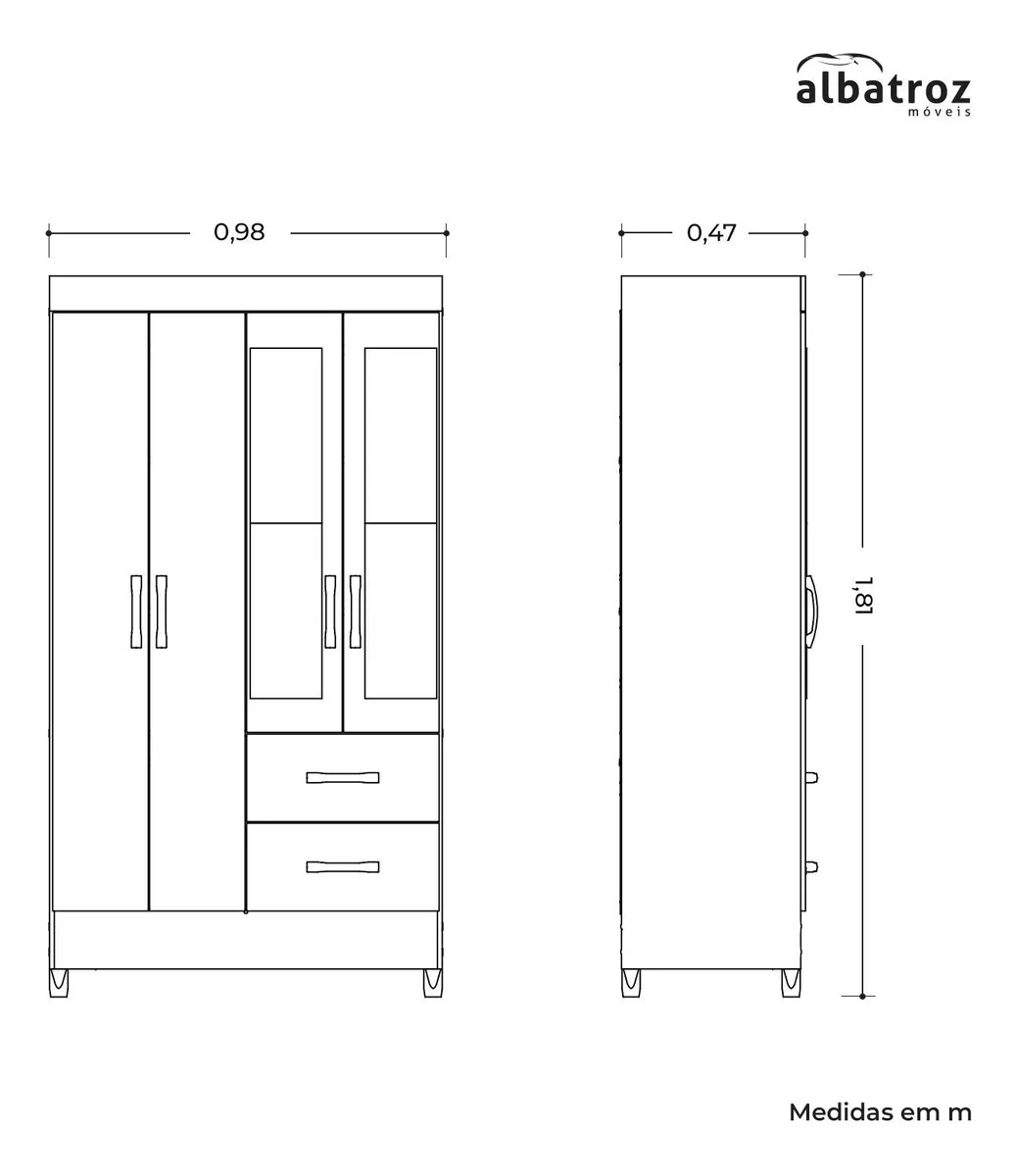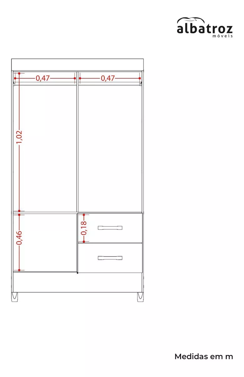 Itens Inclusos : 1 Guarda Roupas, Manual de Montagem e Kit Ferragens