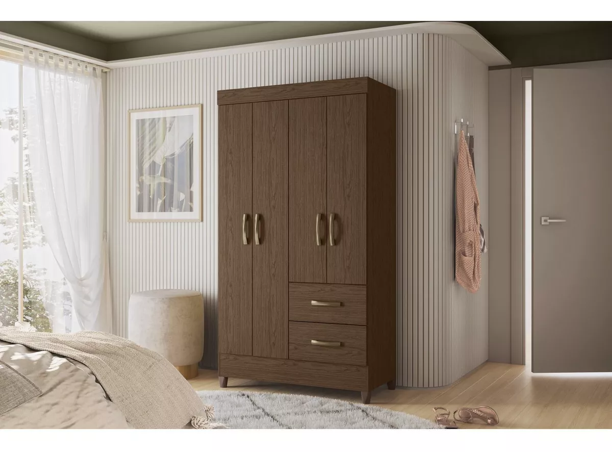 Guarda Roupas Solteiro 4 Portas 2 Gavetas Mobi Cacau