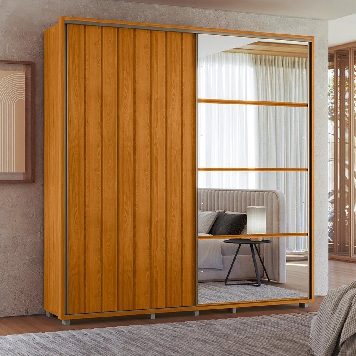O Guarda-Roupa Monet é ideal para quem busca praticidade, organização e design moderno em espaços compactos. Com 1 porta com espelho, ajuda a ampliar visualmente o ambiente e oferece funcionalidade para o dia a dia. O acabamento em Cinamomo (amadeirado quente) combinado com Off White (tom claro) proporciona um visual elegante e fácil de combinar com diferentes estilos de quarto.