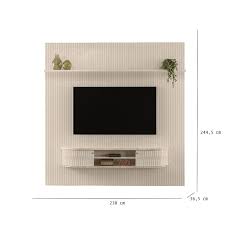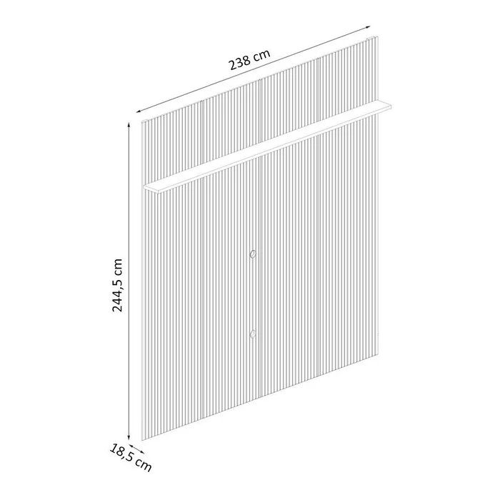 Verifique se a parede onde será fixado tem largura de pelo menos ~238 cm e altura adequada para ~244 cm, além de profundidade (36,5 cm ou mais) para considerar aparelhos, passagem de fios etc.