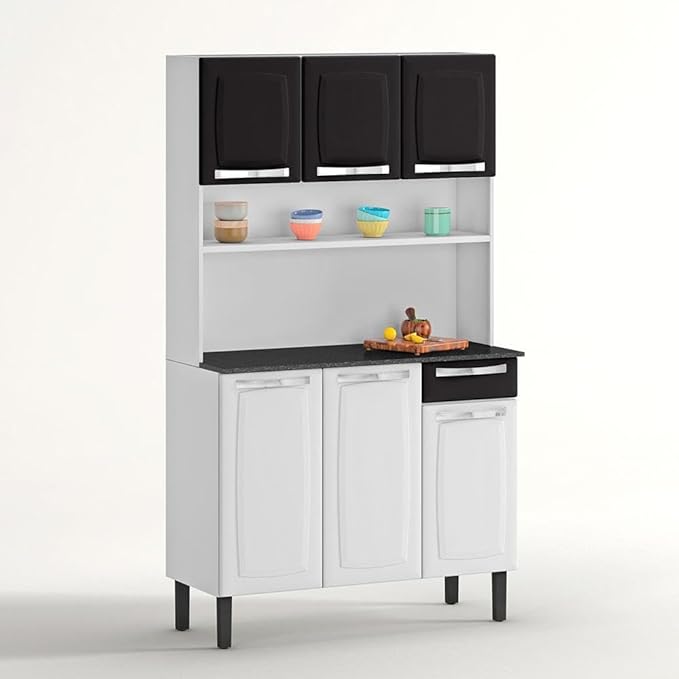 O Balcão I3G1 105 Rose 2023 une praticidade e elegância para sua cozinha. Com design moderno na combinação Branco/Preto, ele é fácil de harmonizar com diferentes estilos de ambiente. Conta com 3 portas e 1 gaveta, oferecendo excelente espaço para armazenar utensílios, panelas e mantimentos. Sua estrutura em MDP garante resistência e durabilidade, além de ser simples de limpar.