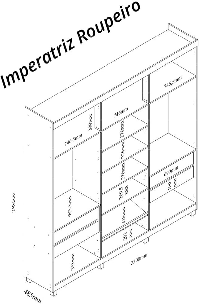 Medidas encontradas | Altura: 2400 mm Largura: 2300 mm Profundidade: 485 mm |