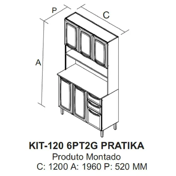 KIT 120 Pratika – 6 Portas, 2 Gavetas – Branco/Preto