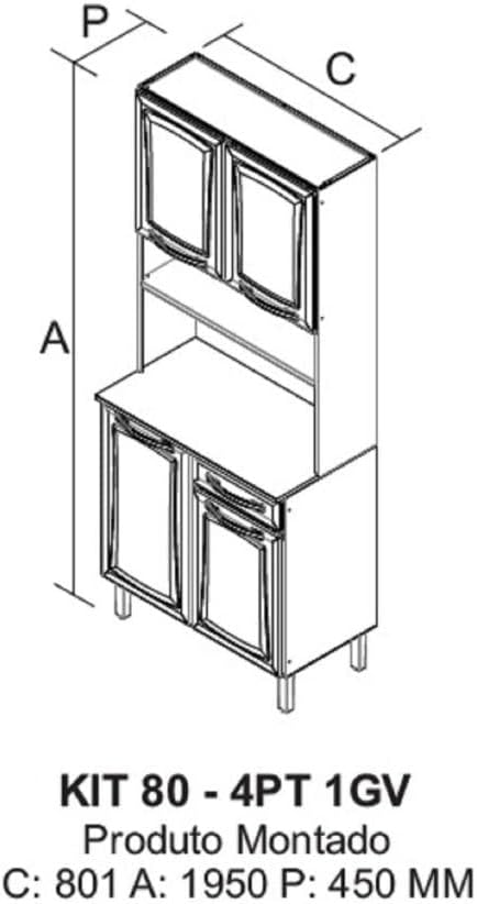 Guarda-Roupa KIT-80 4 Portas 1 Gaveta Pratika – Branco