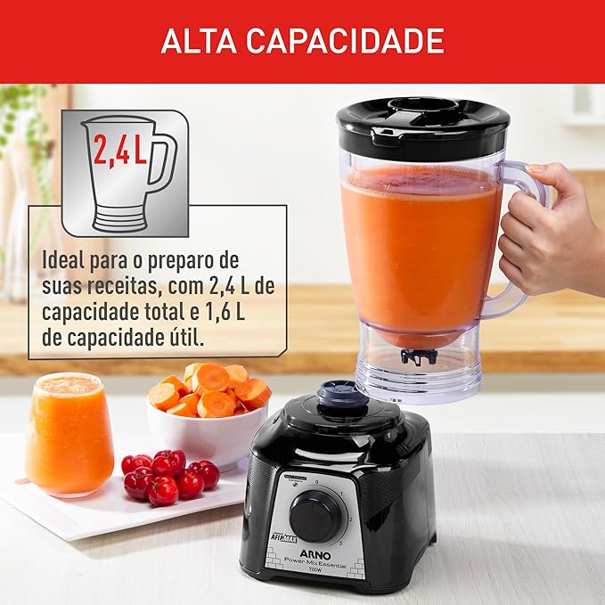 O Power Mix Essential LN3118B1 – 127V é um liquidificador prático e eficiente, ideal para o preparo diário de sucos, vitaminas, molhos e receitas diversas. Possui design funcional, jarra com boa capacidade, lâminas resistentes e funções essenciais para facilitar o uso no dia a dia. Compacto e de fácil limpeza, é uma excelente opção para uso doméstico.