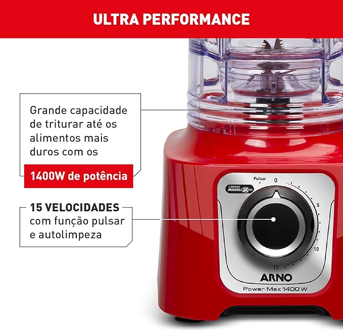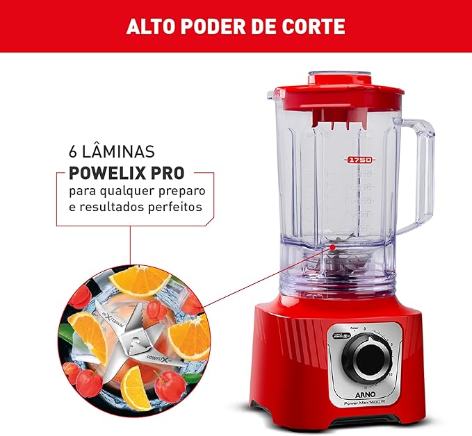 O Liquidificador Mondial Power Max LN5575B1 – 1400W, 127V, Vermelho oferece alto desempenho para triturar, bater e misturar com rapidez e eficiência. Seu motor de 1400W garante potência para receitas mais pesadas, enquanto o copo de alta capacidade possibilita maior praticidade no dia a dia. Na cor vermelho metálico, combina design moderno com robustez e excelente performance.