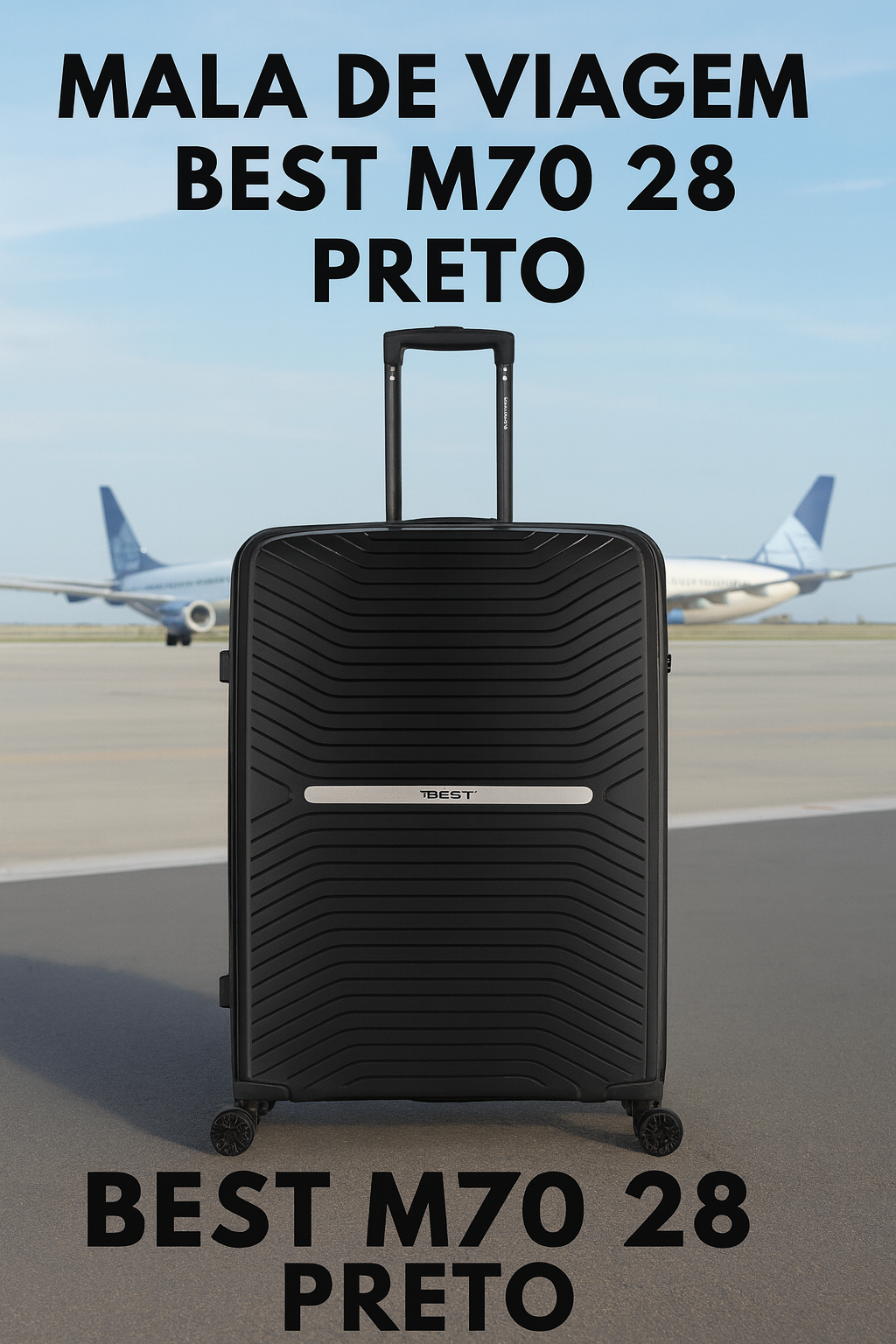 A Best M70 28″ (preto) é a maior mala do conjunto M70, ideal para viagens mais longas. Fabricada em ABS rígido, oferece resistência e leveza ao mesmo tempo. Conta com: