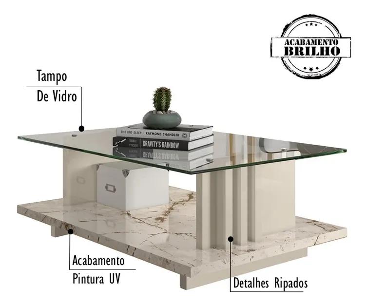 A Mesa de Centro Frizz é a escolha ideal para complementar a sala de estar com elegância, funcionalidade e design moderno. Seu acabamento em Calacata (visual inspirado em mármore) combinado com Off White (tom claro e neutro) proporciona um visual sofisticado e harmonioso, valorizando diferentes estilos de decoração.
