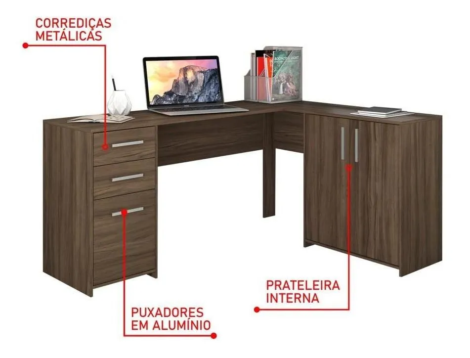 Formato “em L” (canto) com 2 gavetas + 3 portas, prateleira interna. <a href=”https://www.leroymerlin.com.br/mesa-de-escritorio-em-l-2-gavetas-3-portas-office-nt-2005–nogal-trend_1570422148?utm_source=chatgpt.com” target=”_blank” rel=”noopener” alt=”https://www.leroymerlin.com.br/mesa-de-escritorio-em-l-2-gavetas-3-portas-office-nt-2005–nogal-trend_1570422148?utm_source=chatgpt.com” class=”flex h-4.5 overflow-hidden rounded-xl px-2 text-[9px] font-medium transition-colors duration-150 ease-in-out text-token-text-secondary! bg-[#F4F4F4]! dark:bg-[#303030]!”>Leroy Merlin+1</a>