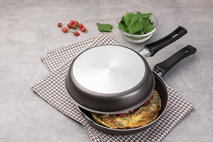 A Omeleteira Ramos N.º 20 é ideal para preparar omeletes, ovos fritos, panquecas e pequenas receitas com rapidez e praticidade. Fabricada em alumínio com revestimento antiaderente cobre, garante que os alimentos não grudem, facilitando o preparo e a limpeza.