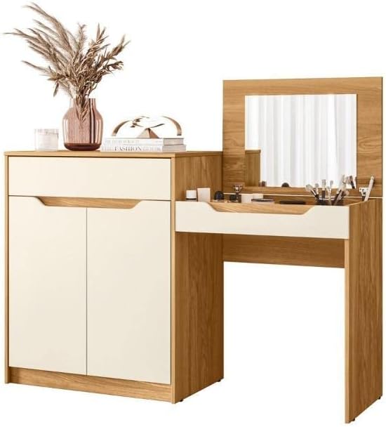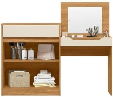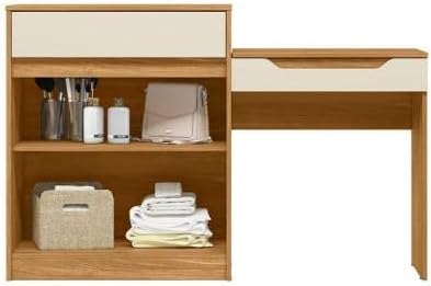 A Penteadeira Escrivaninha Trend é a solução ideal para quem busca versatilidade, praticidade e design moderno. Com acabamento em Cinamomo combinado com Off White, oferece um visual elegante e aconchegante. Pode ser utilizada tanto como penteadeira quanto como escrivaninha, sendo perfeita para quartos, closets ou ambientes compactos.