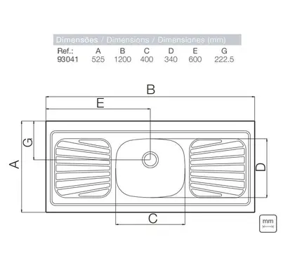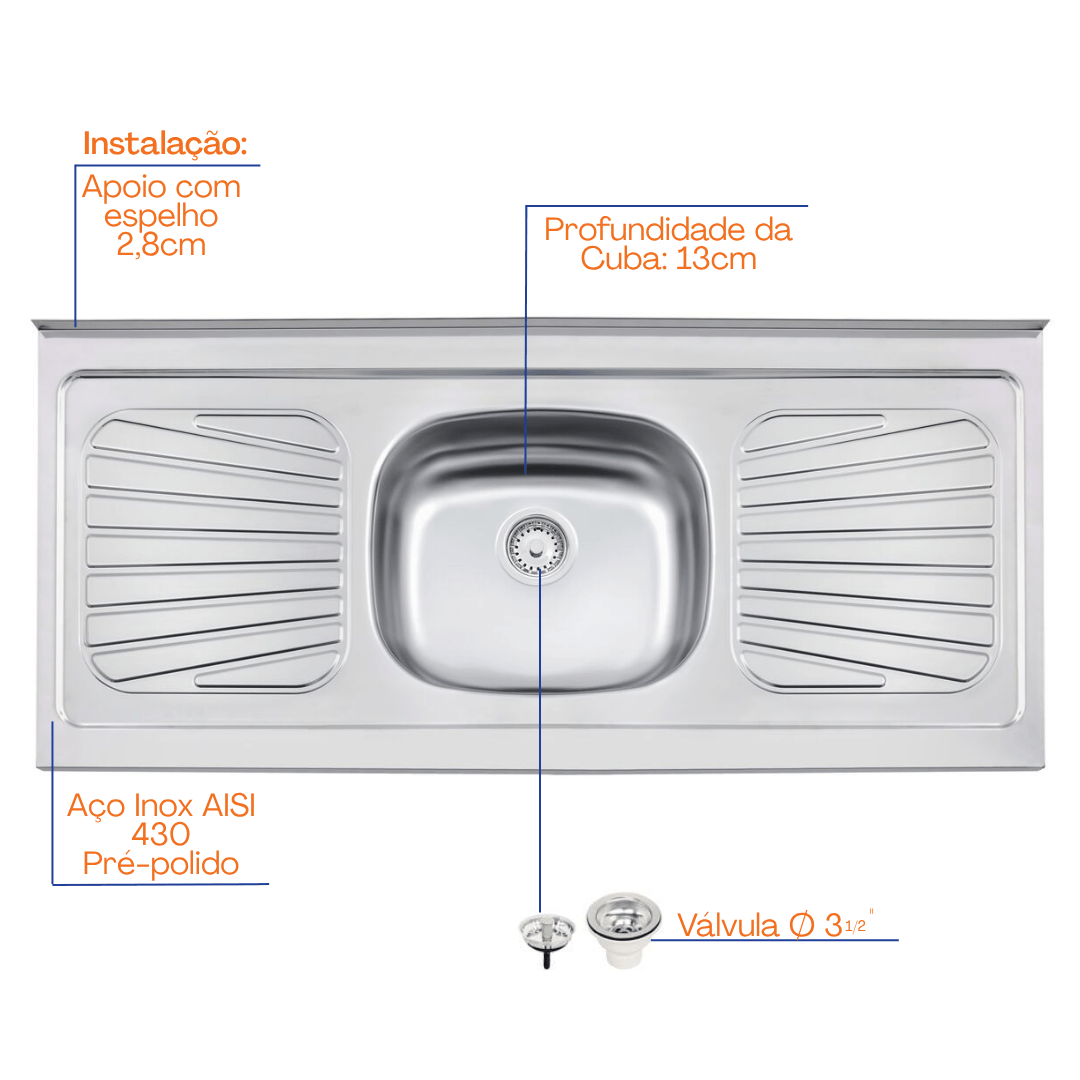 ? Pia em Aço Inox 120×52 cm 1 Cubas – Linha Standard