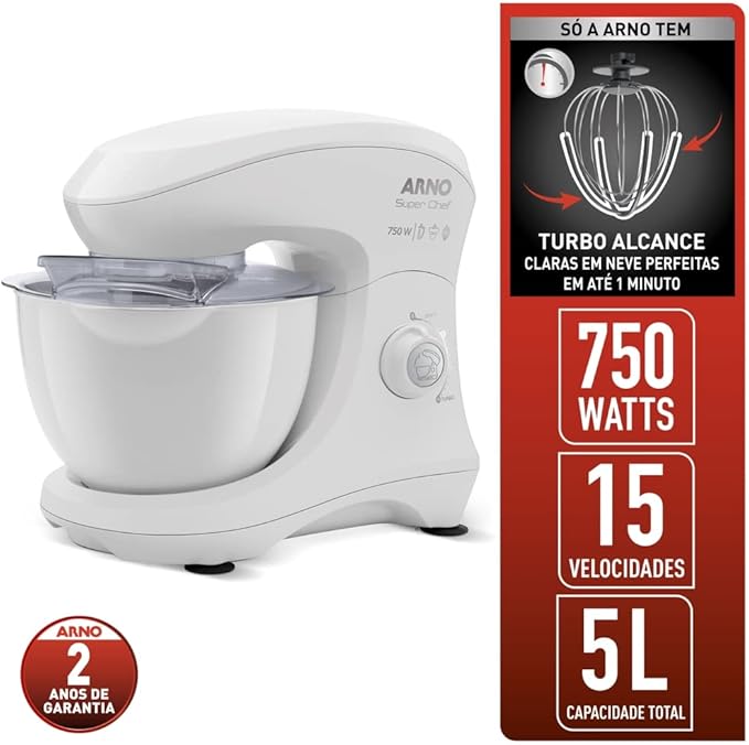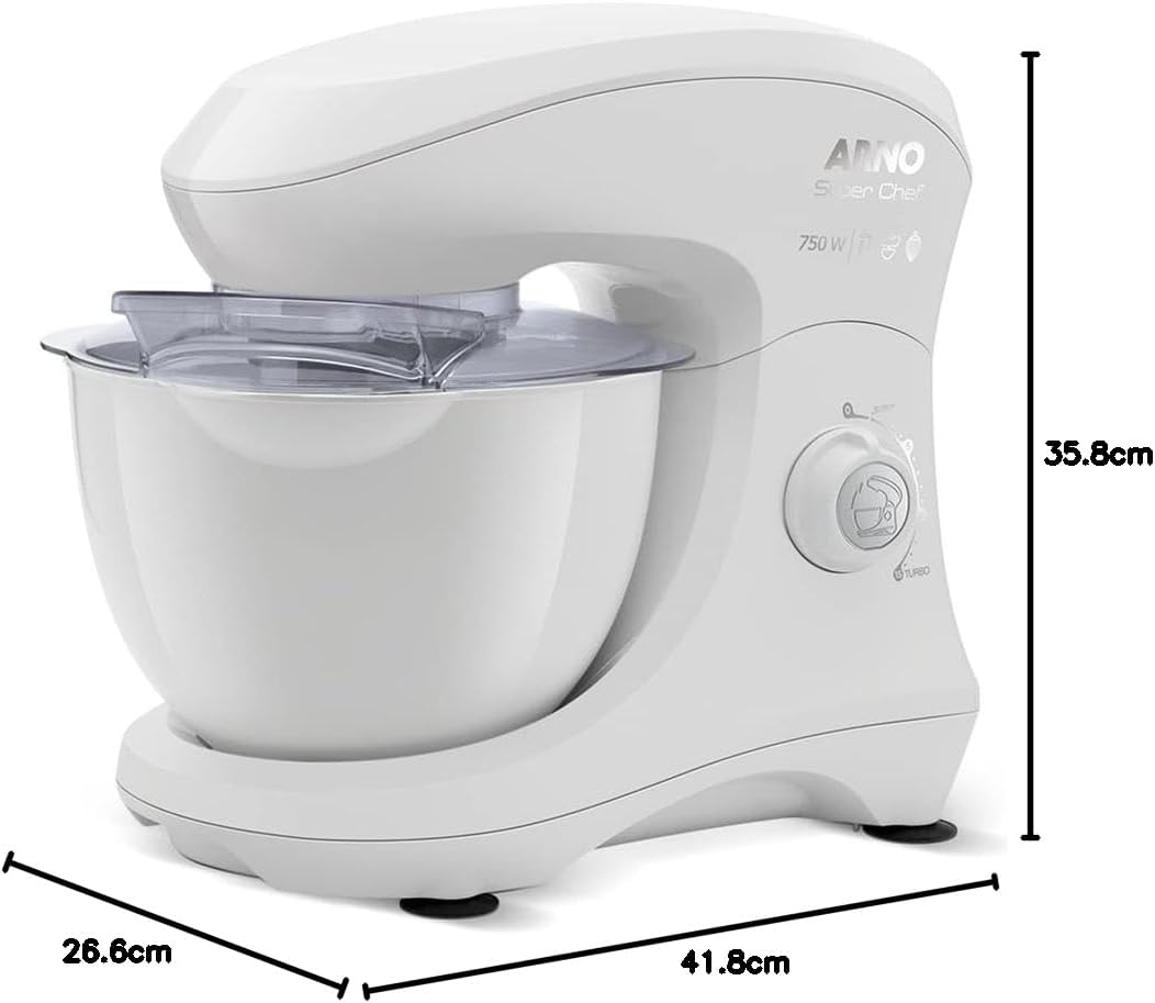 A Batedeira Planetária SuperChef 750W oferece alto desempenho para preparos leves e pesados, garantindo misturas mais homogêneas graças ao movimento planetário. Com motor de 750W, possui excelente potência para massas diversas, além de múltiplas velocidades que permitem total controle no preparo. É ideal para uso doméstico e culinária criativa, unindo eficiência, praticidade e ótimo custo-benefício.