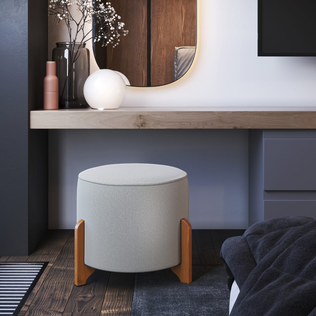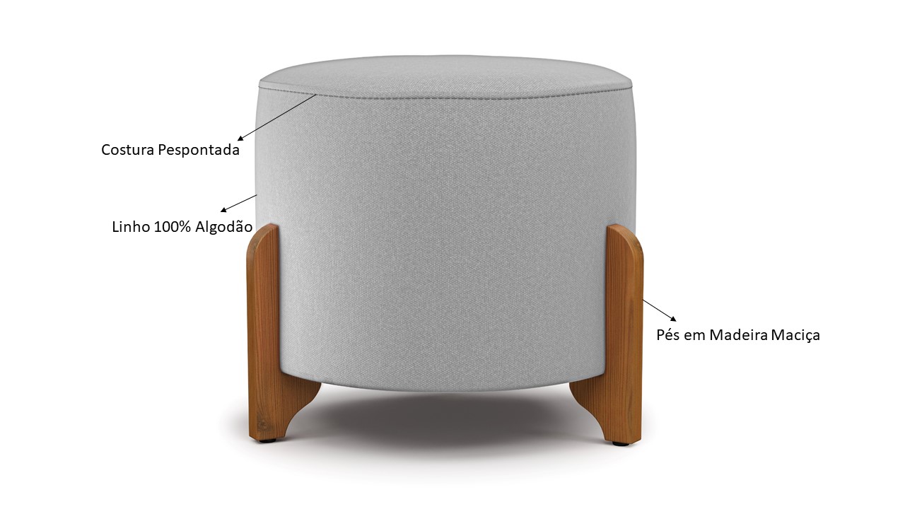 Estrutura / Base | Madeira maciça ou compensado reforçado no corpo do puff |