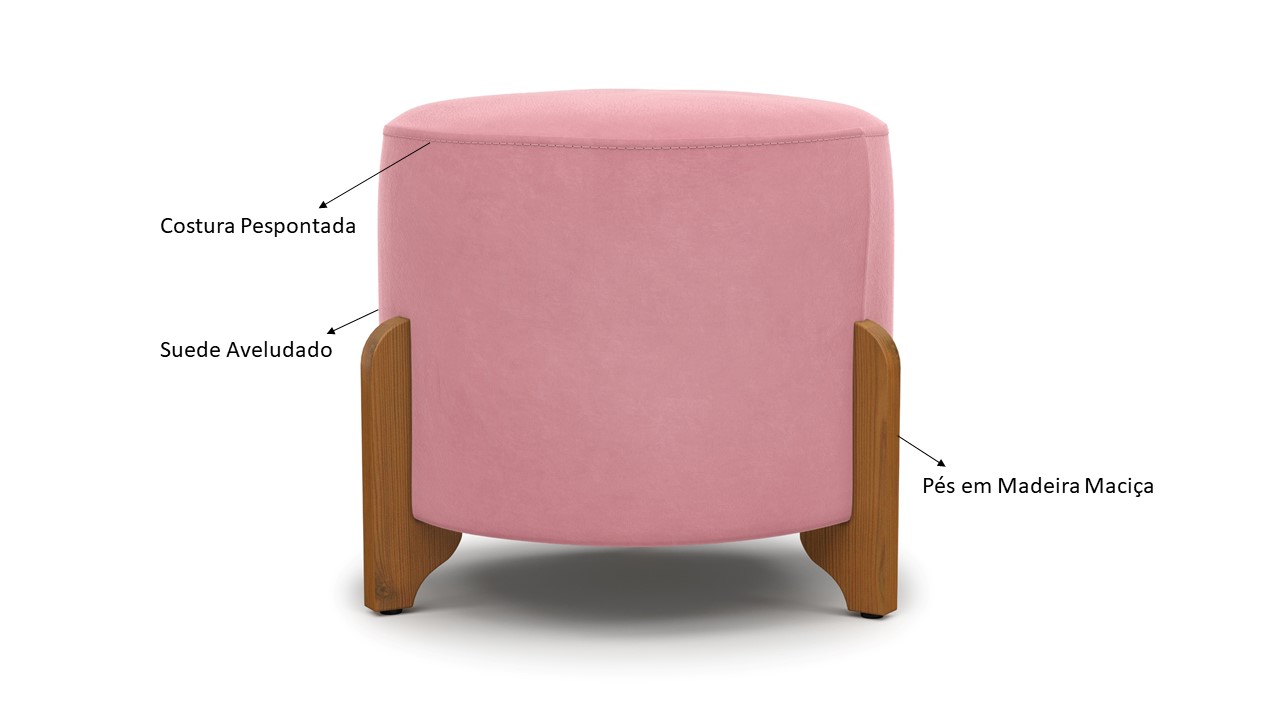 Estrutura / Base | Madeira maciça para o corpo do puff + pés de madeira ou de metal (dependendo da versão) |